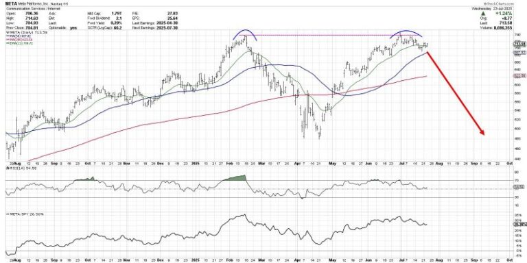The chart of Meta Platforms, Inc. (META) has completed a roundtrip from the February high around $740 to the April low at $480 and all the way back again. Over…